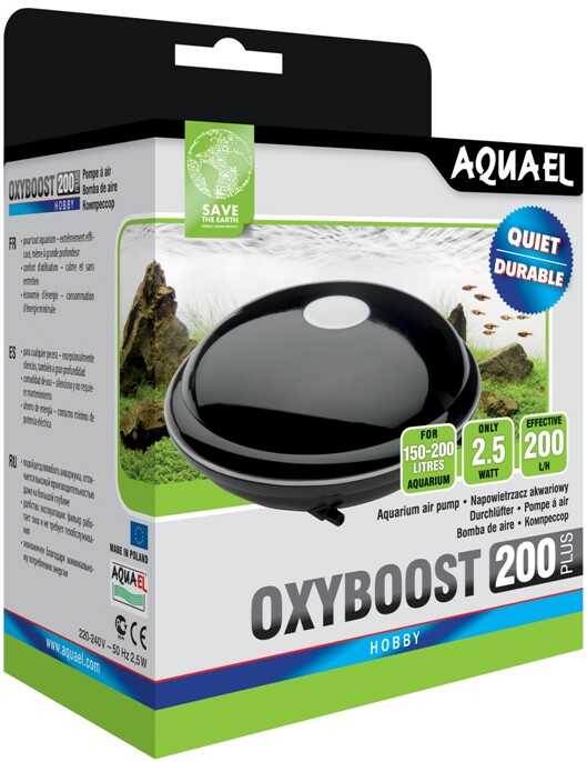 Aquael OxyBoost AP-200 Plus Çift Çıkışlı Hava Motoru, Betta Didyma Pet güvencesiyle sunulan, enerji tasarruflu, sessiz çalışma teknolojisine sahip bir oksijen destek motorudur.