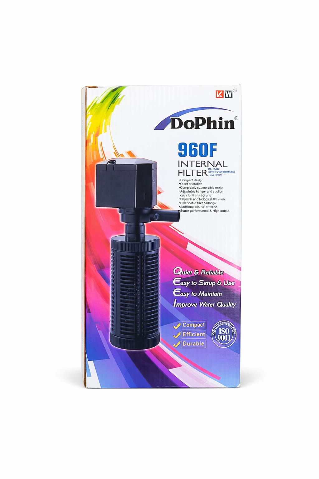 Dophin 960F, tatlı ve tuzlu su akvaryumlarında kullanılabilen, yüksek performanslı bir iç filtre modelidir. Saatte yaklaşık 900–1000 litre su çevirim kapasitesi ile akvaryum içerisindeki kir, atık ve partikülleri hızlı şekilde temizler.