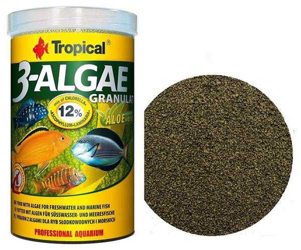 Tropical 3-Algae Granül, özellikle bitkisel beslenen balıkların ihtiyaçlarına uygun olarak formüle edilmiştir. İçeriğinde bulunan üç farklı alg türü (Spirulina, Chlorella ve Kelp), balıkların sindirim sistemini destekler ve doğal beslenme alışkanlıklarını karşılar.