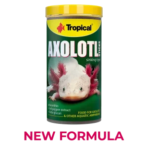 Tropical Axolotl Sticks, aksolotllar, semenderler ve su kaplumbağaları gibi etçil su canlıları için özel olarak formüle edilmiş yüksek kaliteli bir yemdir. Çubuk (stick) formundaki bu yem, suyun üzerinde veya orta seviyede yavaşça batacak şekilde tasarlanmıştır, böylece canlıların doğal beslenme alışkanlıklarına uygundur.