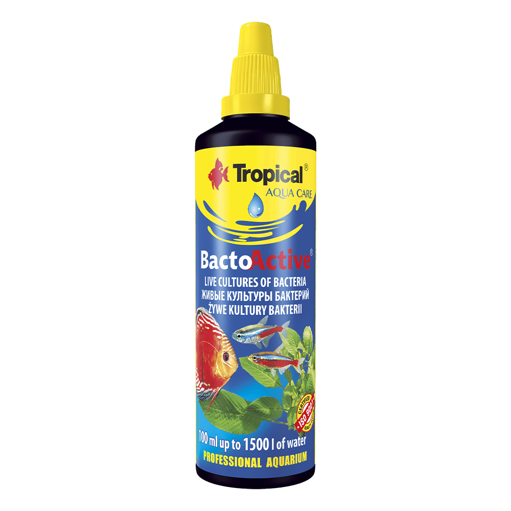 Tropical BactoActive, tatlı su ve tuzlu su akvaryumları için geliştirilmiş, yüksek yoğunlukta canlı bakteri kültürü içeren bir su düzenleyicisidir.