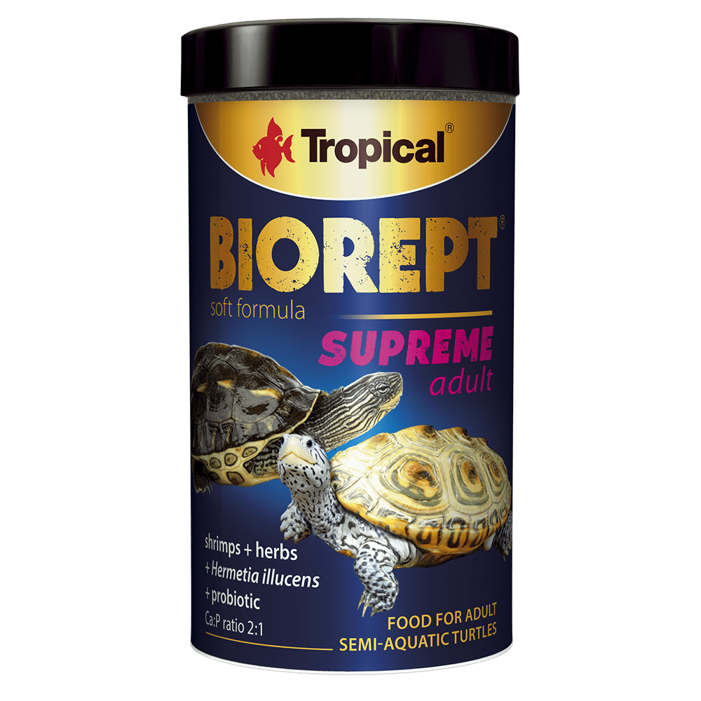 Tropical BioRept Supreme Adult, yetişkin su kaplumbağalarının tüm besin ihtiyaçlarını karşılamak üzere özel olarak geliştirilmiş premium bir yemdir.
