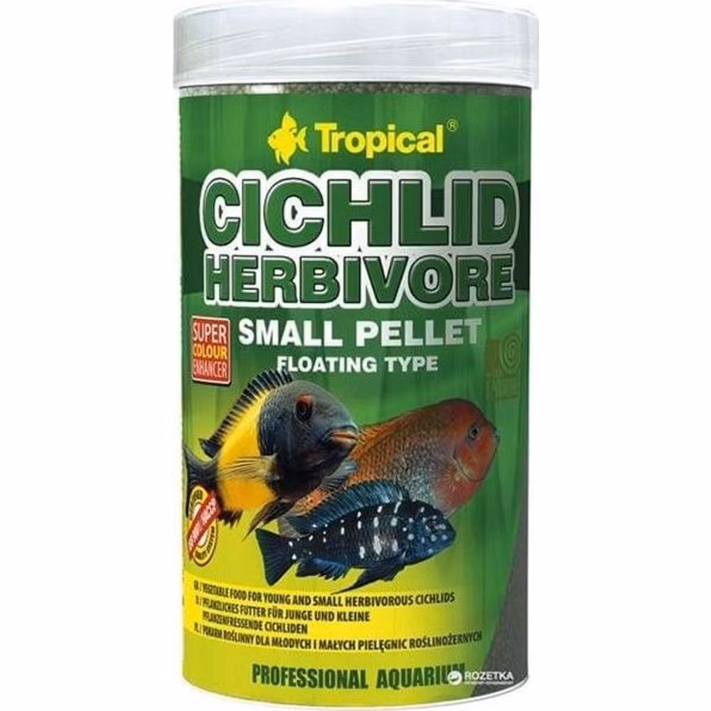 Tropical Cichlid Herbivore Small Pellet 100gr, otçul (herbivore) ciklet balıkları için özel olarak geliştirilmiş, yüksek bitkisel içerikli granül yemdir. Dengeli formülü sayesinde balıkların doğal beslenme alışkanlıklarını destekler ve sindirim sistemini korur.