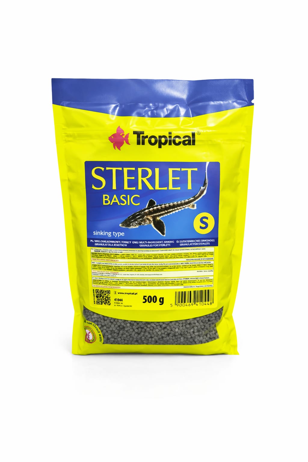 Tropical Sterlet Basic Size S, küçük boy (S) granül formu sayesinde özellikle genç ve küçük ağız yapısına sahip dip balıkları için idealdir. Yem, suya atıldıktan sonra hızla dibe çöker ve formunu uzun süre korur. Böylece balıklar doğal beslenme davranışlarına uygun şekilde rahatça tüketebilir.